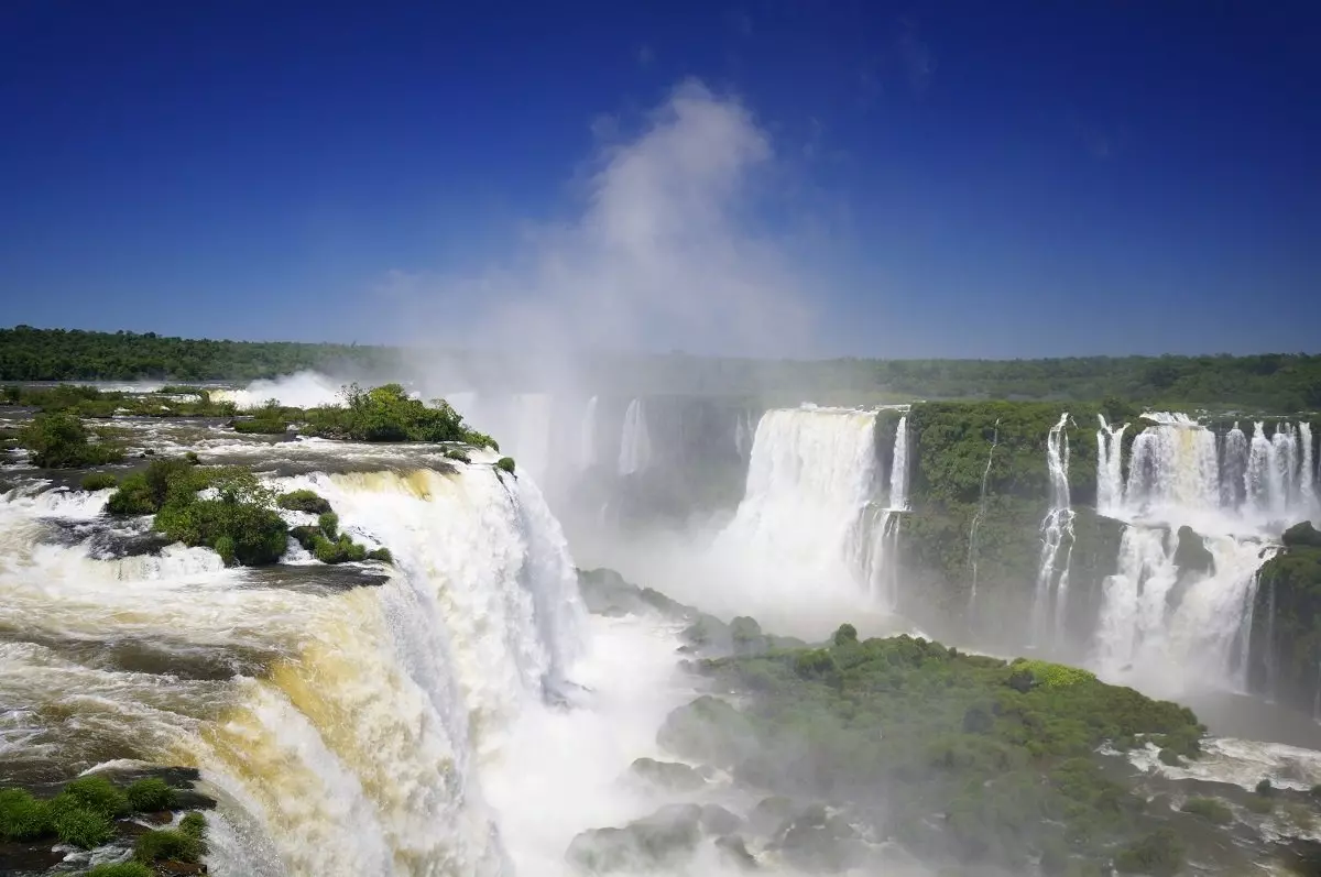 Iguazú består af 275 større og mindre vandfald, der breder sig over 2,7 km og varierer i mellem 60 og 82 meter i højden.