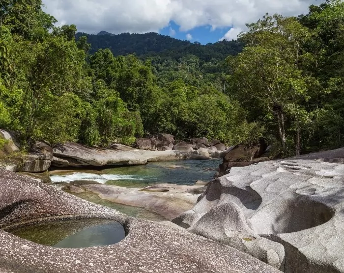 Efter Mission Beach nærmer du dig Cairns, men inden du når frem, kommer du forbi Babinda og de berømte Babinda Boulders. Dette smukke område byder på naturlige vandhuller og glatte stenformationer, som er perfekte til en forfriskende dukkert og en kaffepause.