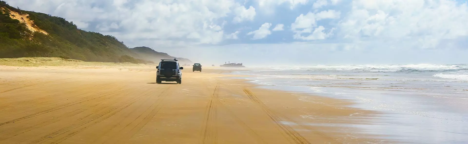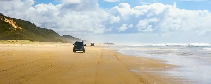 Dagen starter med en smuk 45-minutters færgetur over Great Sandy-strædet. Sammen med en passioneret guide skal øen udforskes i en firehjulstrukket bus – det er nemlig nødvendigt med firehjulstræk for at komme rundt til øens højdepunkter. Svøm en tur i den smukke Lake Mckenzie, oplev kæmpebregner i regnskoven ved Central Station og hold øje med dyrelivet, når du suser hen ad den smukke strand, 75 Mile Beach, som er øens ”hovedvej”. Herude kan du bl.a. være heldig at se den vilde hund, dingoen, som lever på øen. Det er også på 75 Mile Beach, at det rustne skibsvrag Maheno ligger dramatisk skyllet op på stranden efter en voldsom cyklon i 1935.
