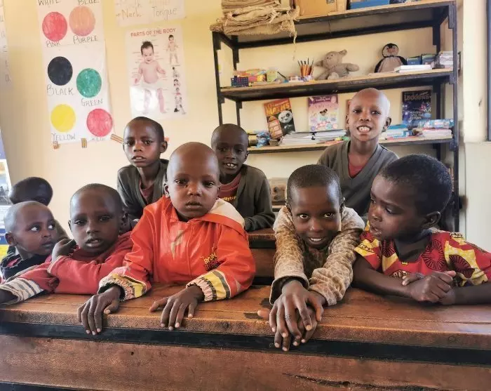 Om formiddagen hjælper børnene til derhjemme, og ved middagstid møder de i skole. Skoledagen starter med et solidt måltid mad, så de er mætte og klar til at lære. Når børnene starter i skolen, taler de kun det lokale masai-sprog. De skal derfor starte med at lære swahili og dernæst engelsk (som er de to officielle sprog i Tanzania), før de rent faktisk kan begynde at lære at læse.