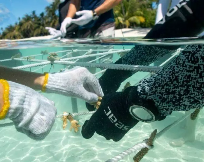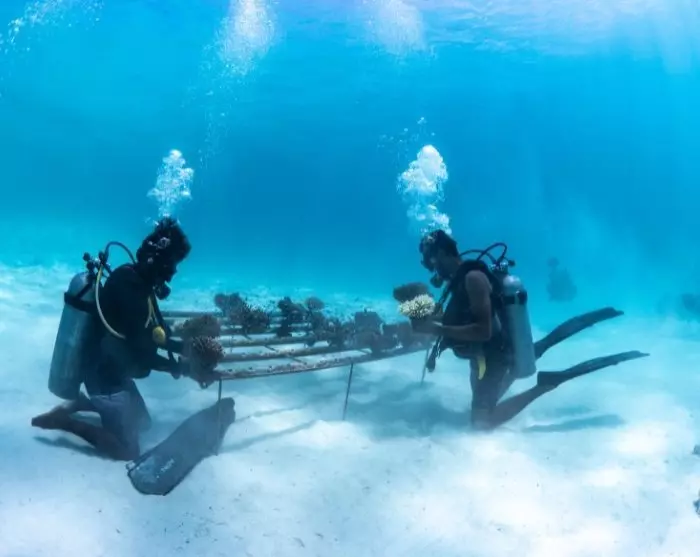 Resortet dedikerer sig også til at beskytte livet under havoverfladen. I samarbejde med organisationen ”Save The Beach Maldives” har de plantet 4.000 koraller for at genoprette koralrevene, og undervandskameraer overvåger biodiversiteten for at sikre et sundt økosystem. De arrangerer samtidig regelmæssige strandoprydninger, hvor både gæster og ansatte deltager.
