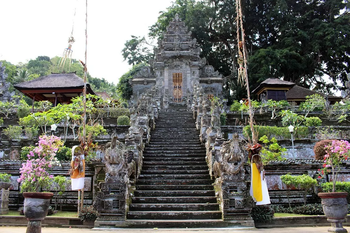 På vejen besøger du det storslåede tempelkompleks Besakih. Man ved ikke, hvornår templet præcist er fra, men stenfundamentet menes at være over 2.000 år gammelt. Besakih ligger utroligt smukt ved foden af den majestætiske vulkan Mt. Agung. Vulkanen gik i voldsomt udbrud i 1963 og efterlod sig store ødelæggelser. Den ødelæggende lava løb på mirakuløs vis uden om Besakih, hvilket betragtes som et tegn fra guderne. Besakih er kendt som modertemplet og er Balis største, vigtigste og mest hellige tempel for de hinduistiske balinesere. Komplekset består af i alt 23 templer og er bygget i 6 niveauer op ad Agung-skråningen – et fantastisk syn! Her får du virkelig den åndelige verden at mærke.