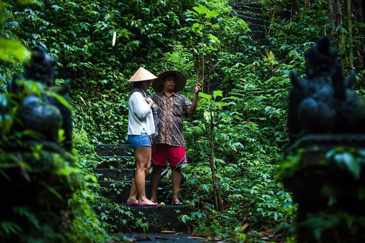 I dag venter en ca. 2 timers smuk vandretur i området omkring hotellet. Guiden tager dig med gennem de maleriske rismarker og plantager, hvor du både kan opleve kaffe, nelliker, bambus og tropiske frugter som bl.a. salak-frugten, der også kaldes slangeskinsfrugten pga. sit slangelignende mønster. Turen giver dig indblik i det lokale liv og i bøndernes daglige rutiner. Du lærer om livet i markerne og om de traditionelle arbejdsmetoder samt det unikke og ældgamle subak-vandingssystem, der sørger for vanding af markerne. Turen slutter med et besøg i en nærtliggende landsby kendt for sine imponerende væveteknikker.