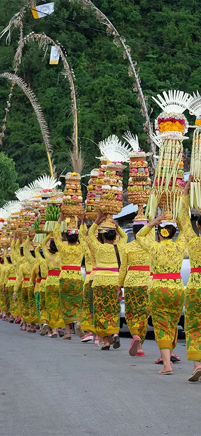 Ubud er en dejlig by med en helt særlig charme og atmosfære. Religion og traditioner dyrkes helhjertet og i gader og stræder udspilles ofte ceremonielle optog, hvor du kan opleve de balinesiske hinduister, klædt i hvidt, gå med store kurve med frugt og blomster på vej til templerne. Det er en utrolig smuk og stemningsfuld oplevelse at overvære.
