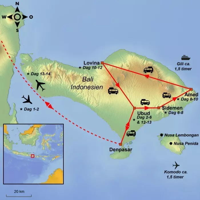 Kom tæt på Balis sjæl i Ubud og oplev de uberørte landskaber i Sidemen, det autentiske snorkelparadis Amed og slut af i Lovina kendt for mørkglinsende vulkanstrande.