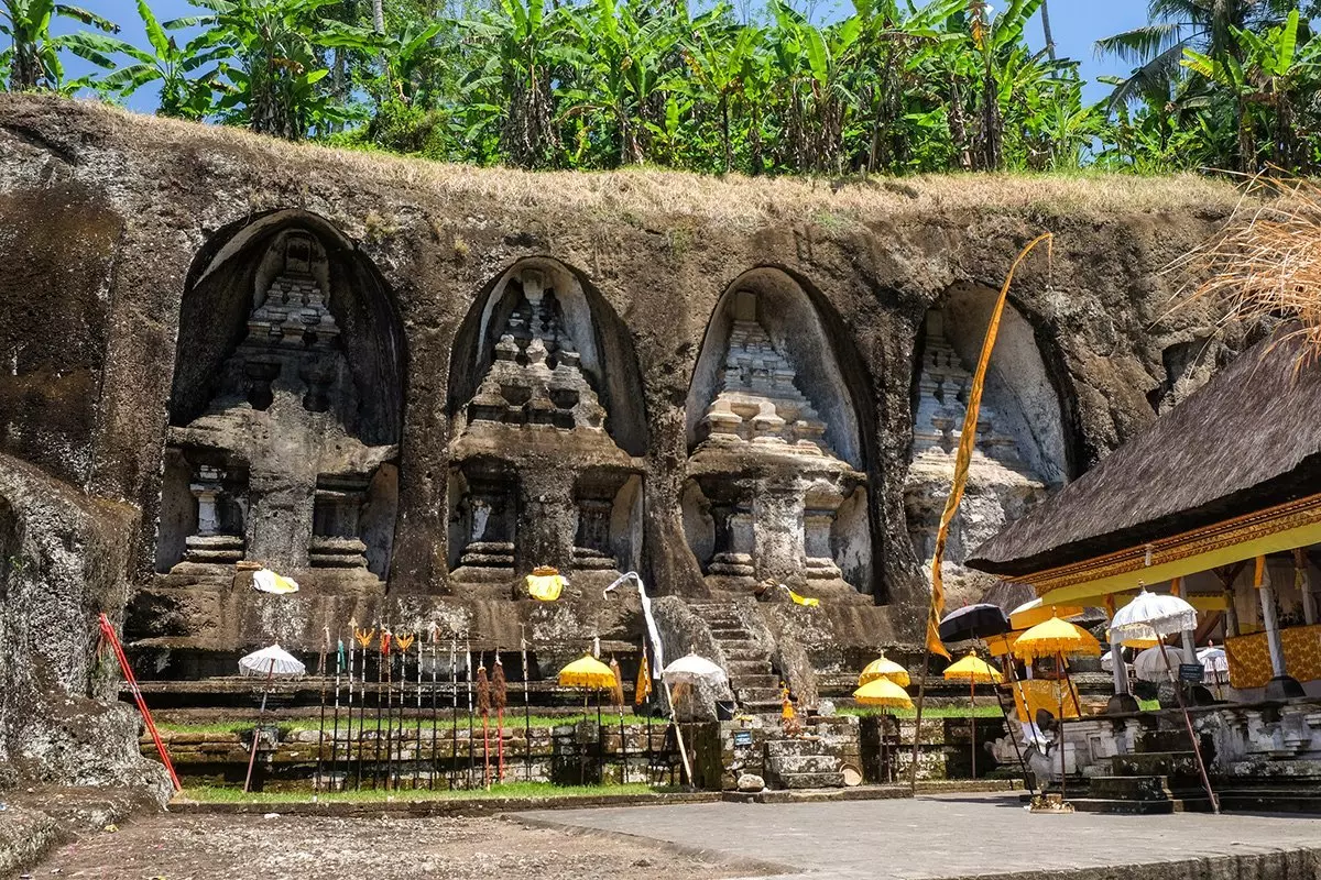 Fra Tirta Empul bliver du kørt til tempelkomplekset Gunung Kawi, der er et af Balis ældste templer. Gunung Kawi ligger i en dal omkranset af frodig jungle, og trapper fører forbi græsgrønne risterrasser og høje palmer ned til selve tempelkomplekset. Langs Gunung Kawi løber floden Pakerisan, som har religiøs betydning for de balinesiske hinduister. Det siges nemlig, at vand der passerer en helligdom, omdannes til vievand. Ved floden skal du over en mindre stenbro for at komme over til Gunung Kawis hovedattraktion, som er de gamle kongekrave, der er hugget ind i klipperne. Her får du tid til at gå rundt og beundre dette gamle, fredfyldte sted fra det 11. århundrede.