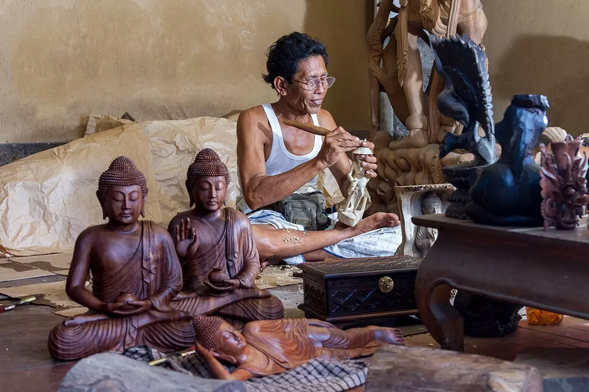 Herefter bliver du kørt til de små kunsthåndværkerbyer Mas og Batubulan, som har hvert sit speciale. I Mas udøver træskærerne deres fag og i Batubulan kan du opleve stenskærerne.