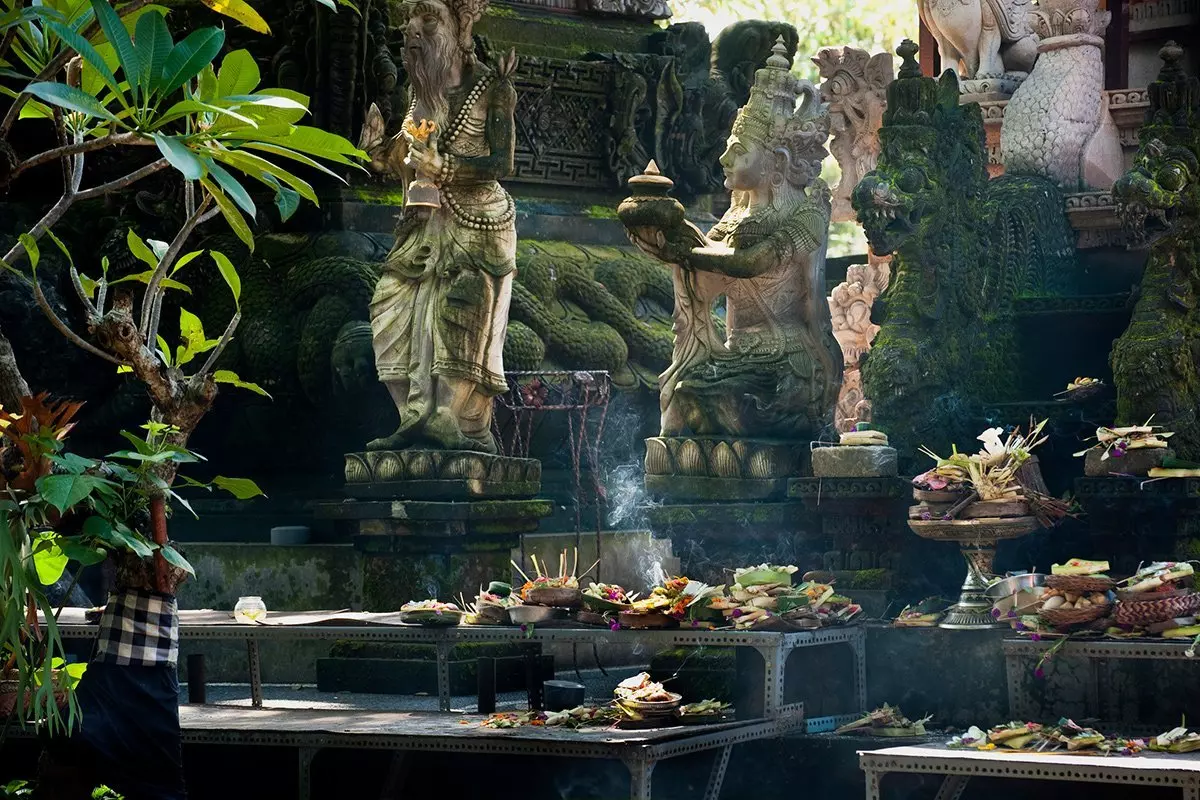 På gader og i templer udspiller der sig ofte ceremonielle optog, hvor du kan opleve balineserne i deres fine traditionelle dragter, på vej til det lokale tempel, med offergaver til de hinduistiske guder Brahma, Shiva og Vishnu. Det er en virkelig flot og stemningsfuld oplevelse at overvære.
