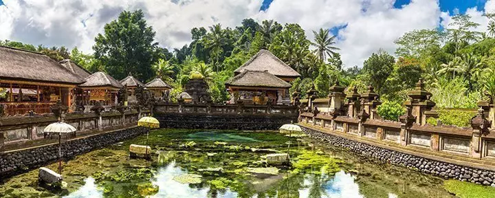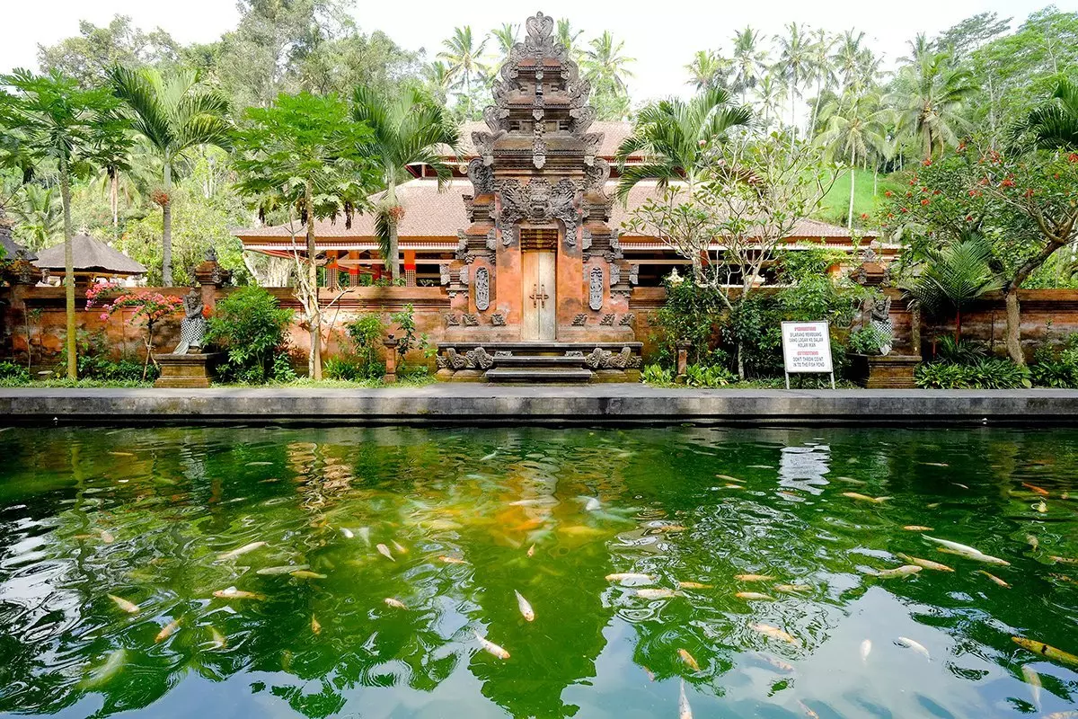 Første besøg er vandtemplet Tirta Empul i Tampaksiring, der ligger ved 12 naturlige kilder. Templet er utroligt smukt med fine skulpturer og fiskedamme fyldt med karper. Hovedattraktionen er bassinet med det hellige vand, hvor du kan bade og få renset sjælen sammen med de lokale, der ligger offergaver og tænder røgelsespinde, som fylder luften med sin duft.
