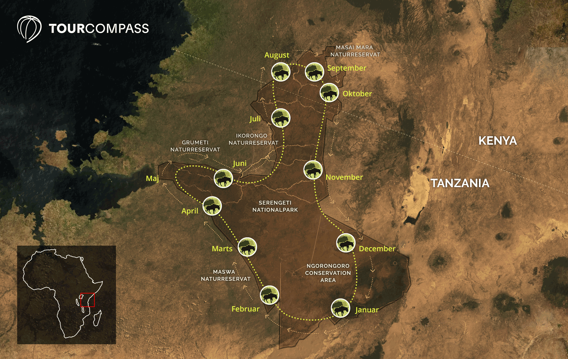 Den store vandring er en kontinuerlig proces, der sker igen og igen, år efter år. Det er altså ikke bare en årlig begivenhed, men noget du kan opleve hele året rundt på forskellige steder på dyrenes rute.