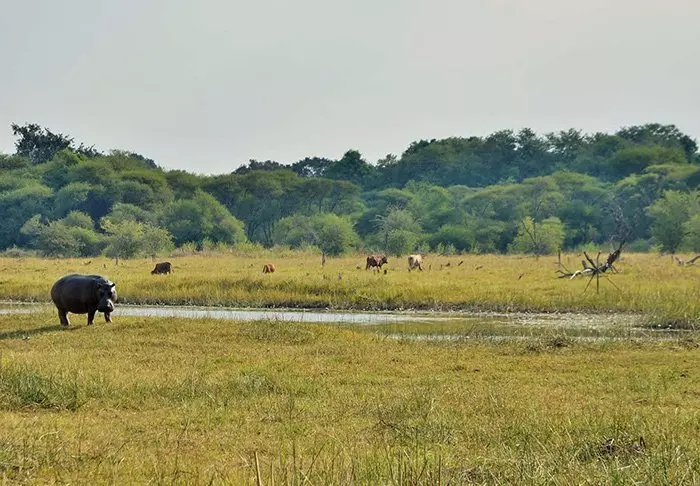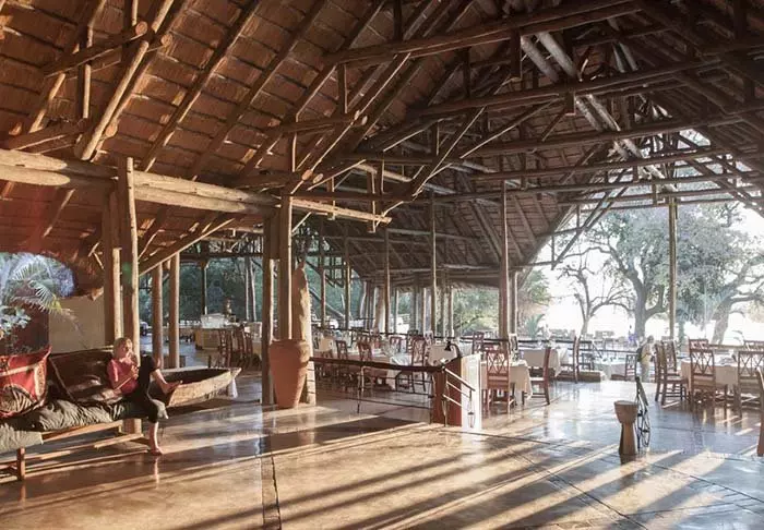 Morgenmaden nydes med udsig til floden – og efter endt safari kan du nyde dagens sidste solstråler fra baren, som også har udsigt mod floden. Det er ganske fortryllende at sidde i det aftagende lys og høre dyrene grynte i den mørke flod.
