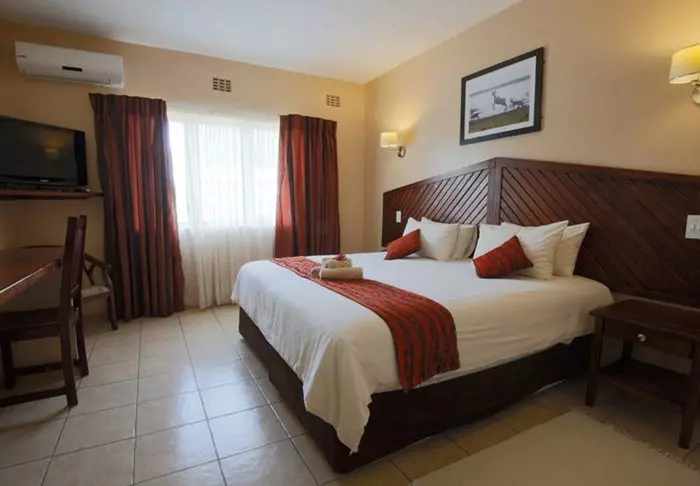Chobe Safari Lodge har 76 værelser i forskellige størrelser, så her er plads til både parret, solorejsende og familier.