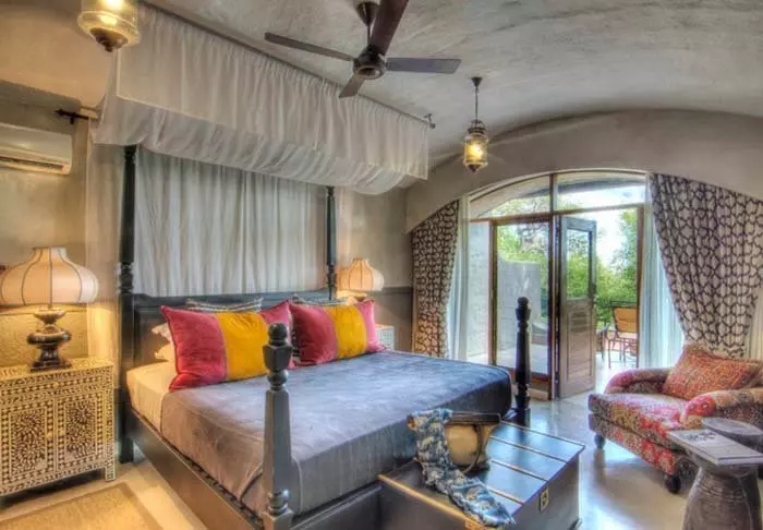 Hele lodgen er smukt indrettet i maurisk stil med hvælvede lofter, lanterner, store puder og en skøn og smagfuld blanding af neutrale og skrappe farver. Lodgen har fire restauranter, to barer, 6 loungeområder, en lille butik, pool, spa, boma – og en stor have med masser af plads.