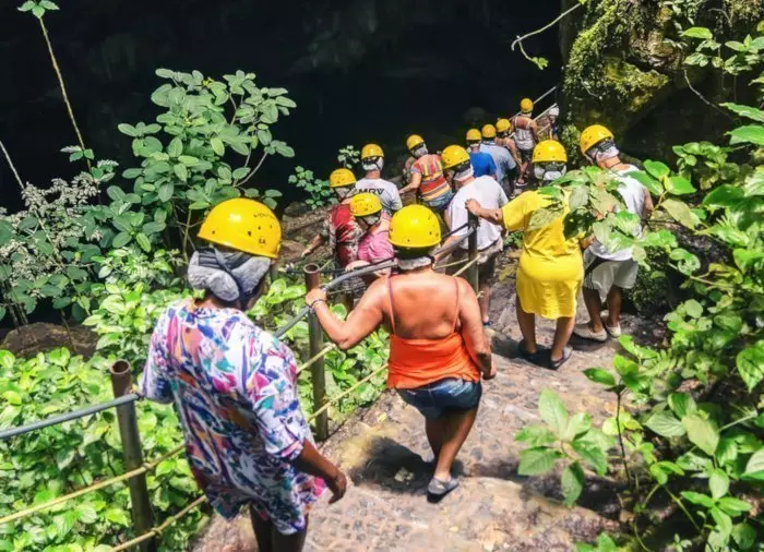 På turen går du sammen med en mindre gruppe og en guide 300 meter ned ad stejle trappetrin, der er skåret ud af de kalkstensklipper, som grotten er dannet af. Undervejs vil der være pauser, hvor du kan beundre den smukke grotte, mens guiden fortæller om de forskellige geologiske formationer, som forekommer der: stalaktitter, stalagmitter og flere andre kalkstensaflejringer. For foden af trapperne er der et plateau, hvor du rigtigt kan suge de billedskønne omgivelser til dig og tage en masse skønne billeder. Selve søen i grotten er mere end 80 meter dyb på sit dybeste punkt, og den huser sjældne albinorejer samt knogler fra sabeltigre og kæmpedovendyr, som boede i regionen for mere end 12.000 år siden.