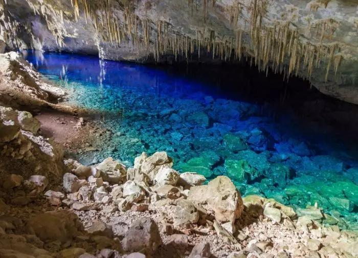 Oplev den naturskønne grotte, Gruta do Lago Azul, der er kendt for sit klare turkisblå vand og sine drypstensformationer.