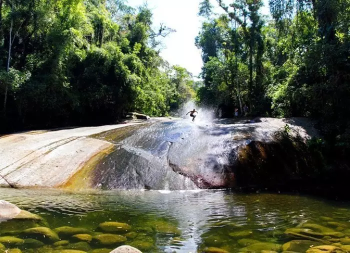 Turen startes med en scenisk køretur i jeep igennem den frodige og smukke regnskov i Serra da Bocaina nationalparken. Du vandrer til forskellige smukke vandfald undervejs bl.a. Toboga og Pedra Branca, hvor du kan opleve eventyrlystne lokale rutsje ned af de glatte klipper i vandfaldet. Der vil være mulighed for at få en forfriskende svømmetur i det kølige vand.