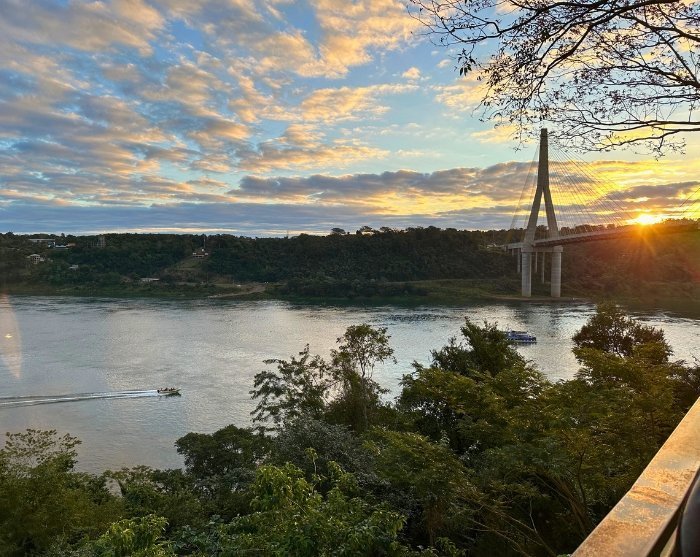 Solnedgangstur ved landegrænsen mellem Brasilien, Argentina & Paraguay