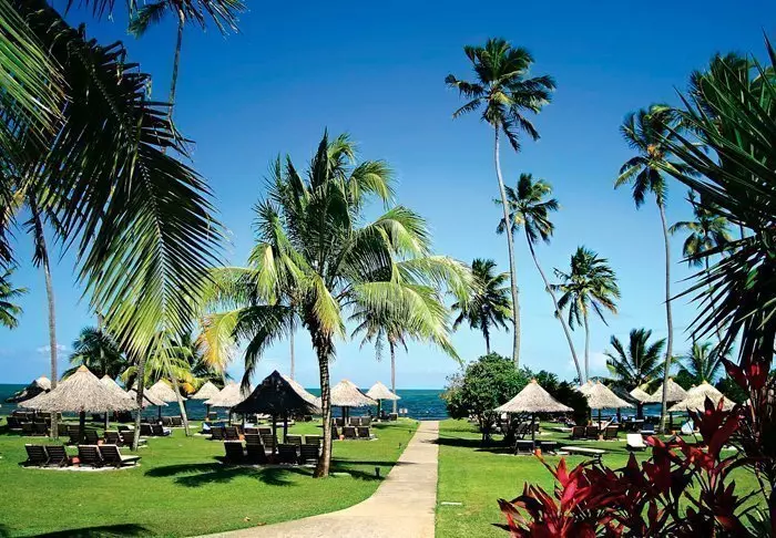 Resortet ligger i frodige omgivelser omgivet af tropisk regnskov og svajende palmetræer og direkte ned til den skønne strand.