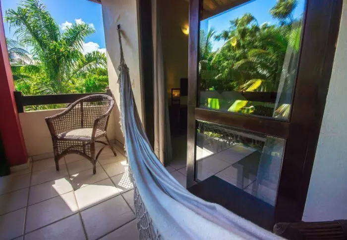 Omgivet af smuk natur og lyden fra havets bølger og fuglenes sang ligger det hyggelige hotel Pousada Naturalia. Hotellets er bygget i naturlige materialer og det blender godt ind med den omkringliggende tropiske skov.