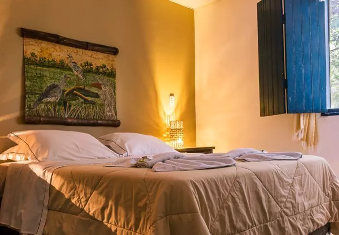 Pousadaen ligger omgivet af den frodige natur og her er en rolig og meget familiær stemning, da der kun er 7 værelser. Du skal op ad en smal stejl trappe for at komme op til værelserne, som ligger bag pousadaens restaurant. De er alle hyggeligt indrettet og udstyret med aircondition, loftvifte, tv, værdiboks, myggenet, minibar samt terrasse med hængekøje.