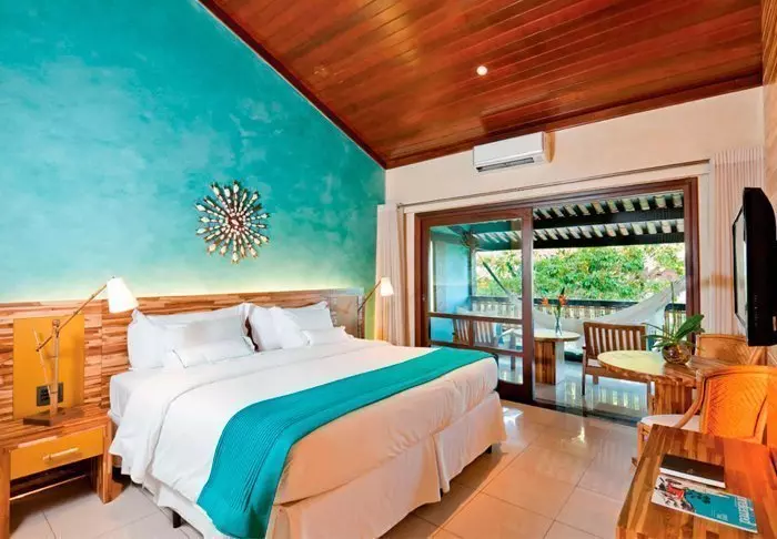 Værelserne er simpelt indrettede med farverige billeder fra en lokal kunstner, og har aircondition, gratis wi-fi, tv, værdiboks, hårtørrer og minibar. På terrassen eller altanen kan du slappe af i en hængekøje mens du nyder lyden fra bølgerne.
