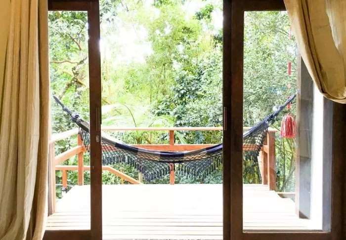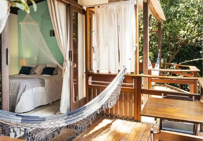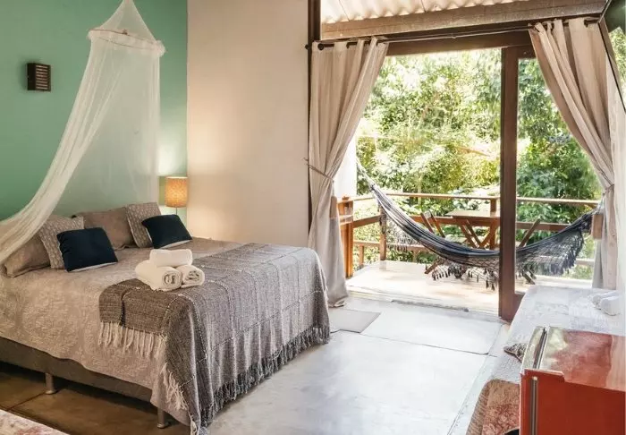 Pousadaen ligger omgivet af den frodige natur og her er en rolig og meget familiær stemning, da der kun er 7 værelser. Du skal op ad en smal stejl trappe for at komme op til værelserne, som ligger bag pousadaens restaurant. De er alle hyggeligt indrettet og udstyret med aircondition, loftvifte, tv, værdiboks, myggenet, minibar samt terrasse med hængekøje.