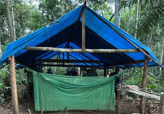 Hvis du overnatter på Amazon Tupana Lodge, har du den sidste nat mulighed for at overnatte ude midt i regnskoven i en primitiv junglelejr i en hængekøje med myggenet.