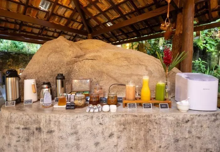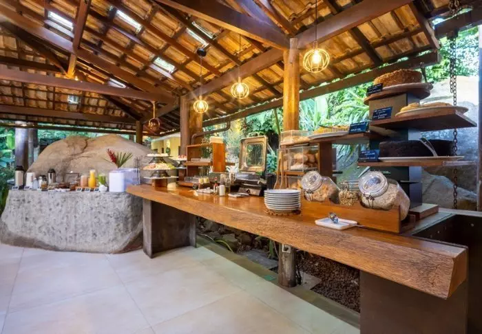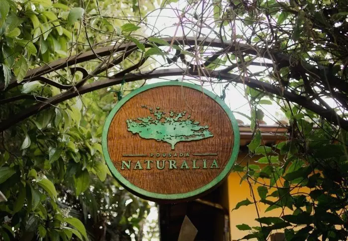 Omgivet af smuk natur og lyden fra havets bølger og fuglenes sang ligger det hyggelige hotel Pousada Naturalia. Hotellets er bygget i naturlige materialer og det blender godt ind med den omkringliggende tropiske skov.