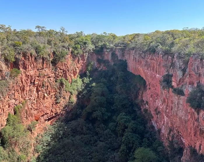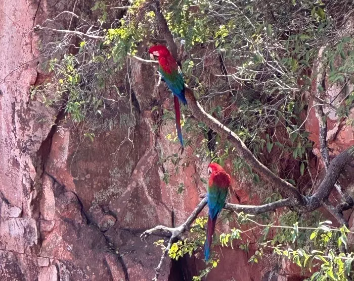 Fra de krystalklare floder går turen til Buraco das Araras, som er et stort zinkhul med en omkreds på hele 500 meter og en dybde på ca. 100 meter. Rundt om hullet er en flot natur, men hovedattraktionen er de smukke og skrappende mørkrøde araer (Ara chloropterus), der holder til her, og som bygger deres reder i klippesprækkerne.