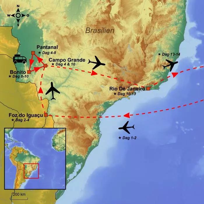 Om morgenen bliver du hentet og kørt tilbage til lufthavnen i Campo Grande, hvorfra du skal flyve videre til Rio de Janeiro.