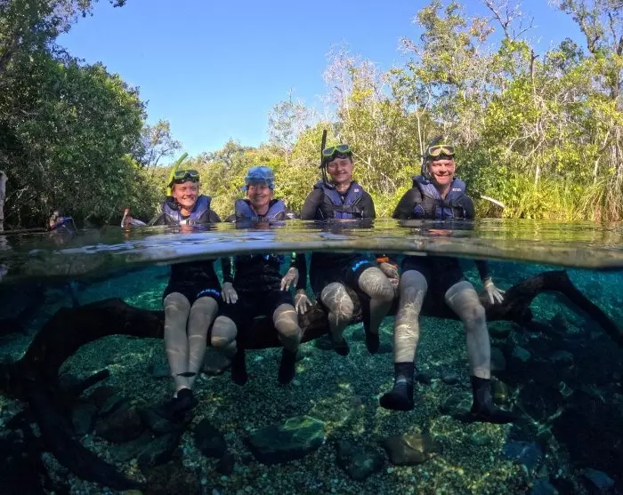 Turen starter med en lille køretur efterfulgt af en ca. 1,5 kilometer gåtur i den frodige regnskov inden ankomst til floden. Din guide giver en grundig introduktion til at snorkle, så alle kan være med, selv om du måske aldrig har snorklet før. Det er en ubeskrivelig oplevelse at opleve livet under overfladen på nærmeste hold. Nogle steder kan du blot lade dig flyde med strømmen, imens du andre steder skal svømme selv. Vandtemperaturen er ca. 26 grader og det er en meget unik oplevelse at svømme rundt blandt farverige fisk og frodige vandplanter – det føles som om du befinder dig i et stort akvarie!