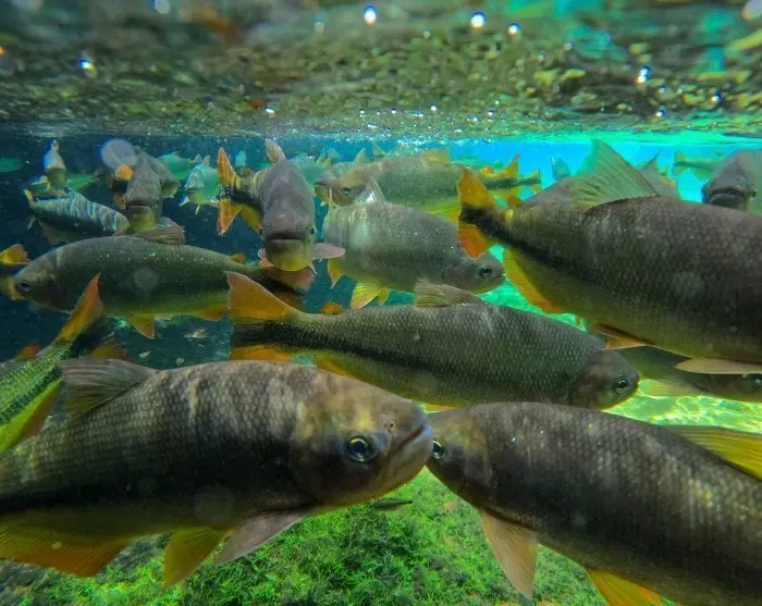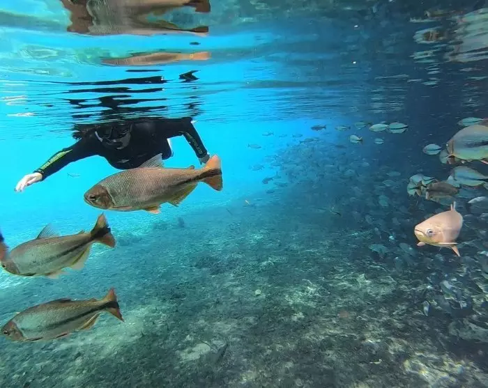 I Bonito venter der dig en snorkeltur i krystalklare floder blandt farverige fisk og vandplanter, samt et besøg til det store zinkhul, Buraca das Araras, hvor de mørkrøde araer (Ara chloropterus) holder til og bygger reder i klippesprækkerne.