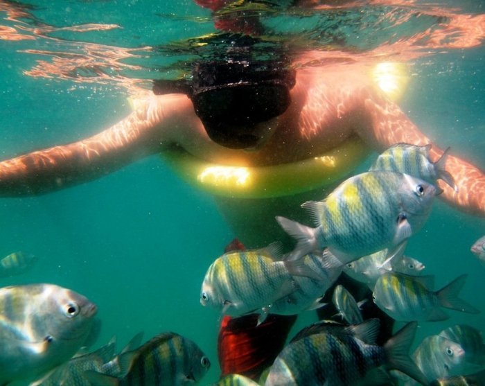 Du kan også hjemmefra tilkøbe en bådtur til den smukke blå lagune, hvor du kan bade og svømme med farverige fisk i det klare vand.