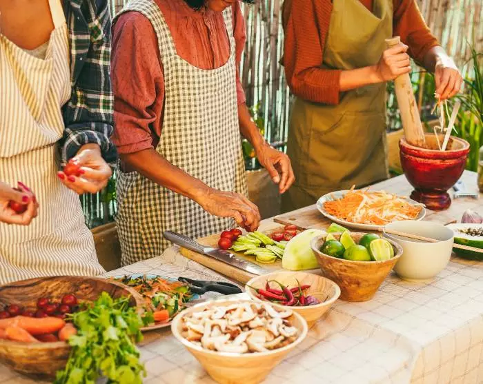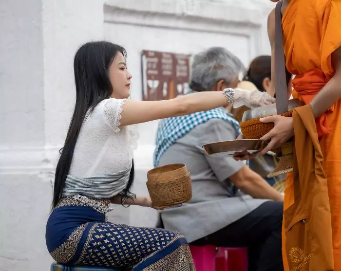 I dag lærer du at lave traditionelle laotiske retter, som skal gives til de lokale munke. Du bliver hentet på hotellet og kørt til Phosy-markedet, hvor du, sammen med din guide, mødes med en lokal familie. Sammen køber I ind til dagens madlavning, der bl.a. består af fisk, grøntsager og frugter. Efter indkøbene tager du med hjem til den lokale familie, hvor du lærer at lave de traditionelle retter. Du skal bl.a. være med til at lave klisterris (khao niew), bambusskudssuppe (Keang Nor Mai), dampet fisk i bananblade (Mok Pa), Luang Prabang-stuvning (Ork Lam) og auberginesauce (Jeo Mak Kheua). Når retterne er færdige, går du med over til det nærliggende tempel. Her vil din guide og familien lede dig gennem hele ceremonien, hvor du giver almisse og modtager velsignelse fra munkene. Efter ceremonien siger du farvel til munkene og går tilbage til den lokale families hus for at spise frokost. Dette er også en oplagt mulighed for at lære mere om den laotiske kultur og om hvordan familiens hverdag typisk ser ud.