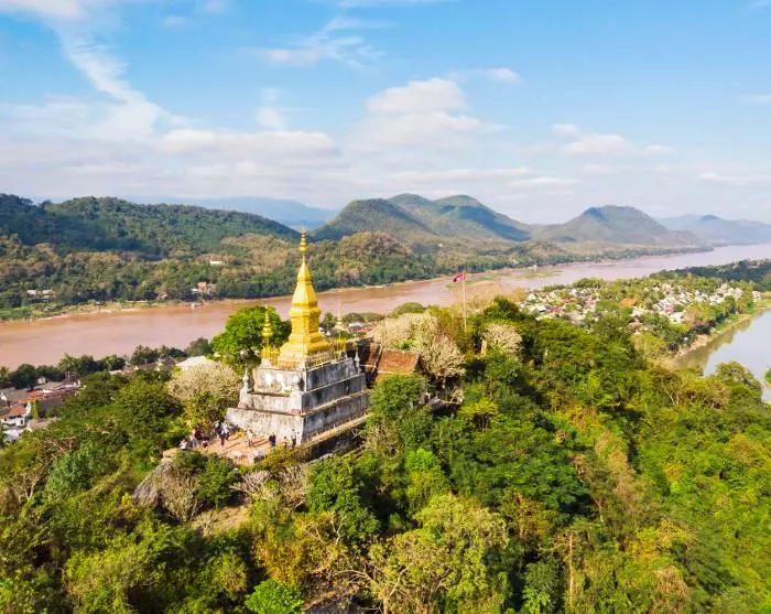 Turen går videre til Phousi-bjerget, som blot ligger 1 km væk. Her venter 328 trappetrin op til det højeste punkt på Phousi-bjerget. På vejen op passerer du små templer og Buddha-statuer, hvor du kan stoppe op, hvis du lige skal have pusten. Dine anstrengelser belønnes til fulde, når du står på toppen. Her får du nemlig en malerisk panoramaudsigt over smukke Luang Prabang med sine floder, templer og frodige landskaber med bjerge i baggrunden.