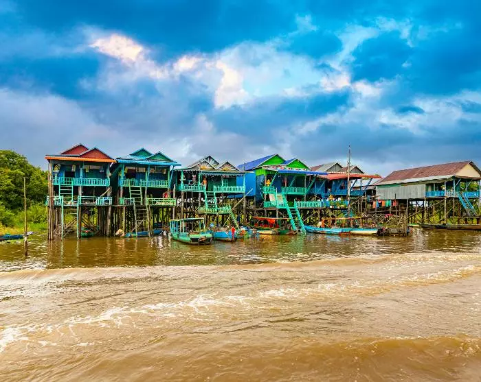Turen fortsætter til Tonle Sap-søen, hvor du bliver sejlet til et af de mange fiskerlejer langs søen, enten Kompong Khleang (mellem august og start februar) eller Chong Khneas (mellem midt februar og juli). Her bliver du klogere på, hvordan livet leves for de mange familier, der primært nærer sig ved fiskeri. Familierne bor i de karakteristiske, farverige huse bygget på lange stolper, så de kan klare den høje vandstand i regnsæsonen, hvor landsbyens små gader forvandles til små kanaler. I tørsæsonen, hvor vandstanden er lav, er der frit udsyn til de lange stolper.