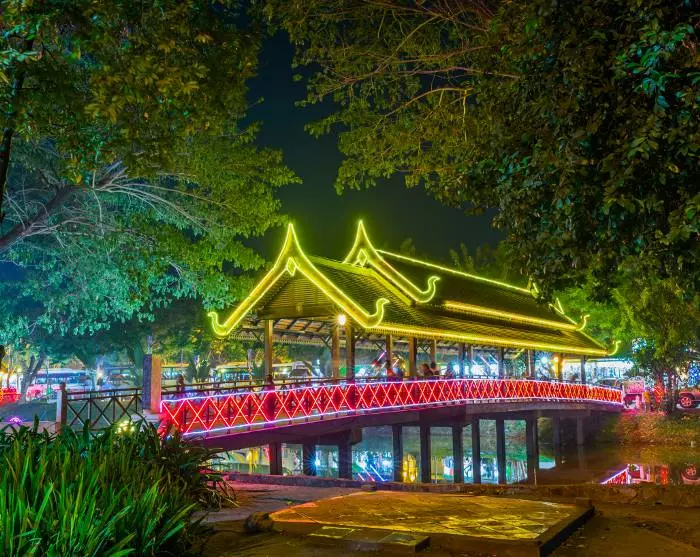 Om aftenen kan du slentre rundt i den gamle bydel og nyde synet af de oplyste templer og monumenter. Eller hvad med et besøg på et af byens populære natmarkeder, hvor du kan shoppe souvenirs og spise dig igennem de mange, lækre streetfoodretter?