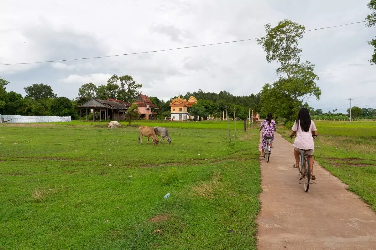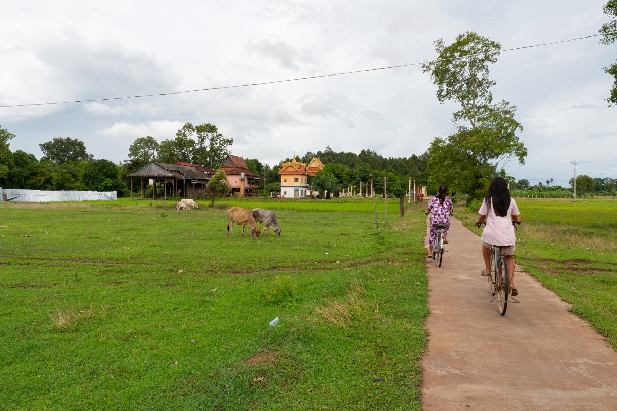 Alt er stille og roligt omkring dig, så du kan nyde de grønne landskaber, de eksotiske frugttræer og palmer med mango, jackfrugter og bananer samt marker og enge med græssende okser. Du cykler på den helt flade og 9 km lange cykelsti rundt på øen. På turen passerer du en lille pagode og i de omkringliggende høje træer, kan du være heldig at se store flokke af flagermus hænge ned. Du gør stop undervejs efter lyst og behov, og det er let at komme i kontakt med lokalbefolkningen, der er meget imødekommende med smil og vink, når du cykler forbi. Hvis du er heldig, bliver du måske budt på en kop te eller kaffe hos en af de lokale familier. Du cykler til den nordlige del af øen, hvor du besøger et lille lokalsamfund. Her får du et godt indblik i, hvordan livet leves her på Koh Trong, og du bliver budt på frisk frugt. Herefter skal du deltage i et træplantningsprojekt, som både gavner klimaet, biodiversiteten og lokalsamfundet. Til sidst kan du nyde den sidste eftermiddagssol over Mekong-floden.