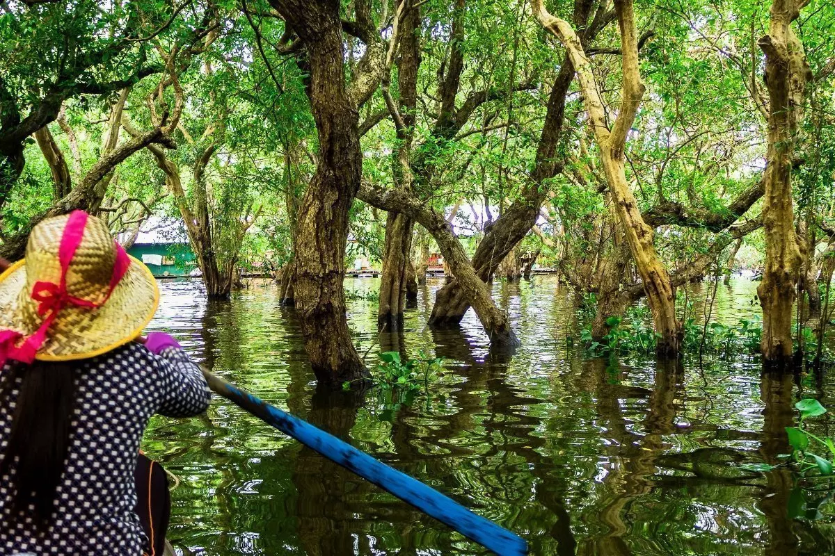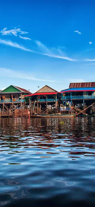 Du ankommer til bredden ved Tonle Sap-søen og går ombord i en båd, der sejler dig til den flydende landsby Kompong Phluk. Her kommer du helt tæt på, hvordan livet leves hos de mange familier, der primært lever af fiskeri. Familierne lever langs søbredden i farverige huse, der står på lange stolper, så de kan klare den høje vandstand i regnsæsonen, hvor landsbyens små gader forvandles til små kanaler. I tørsæsonen med den lave vandstand kan du frit se de høje stolper.