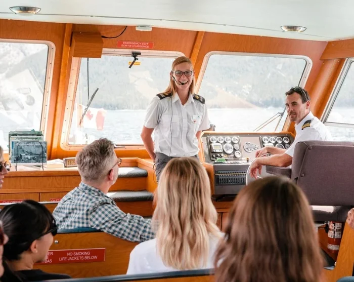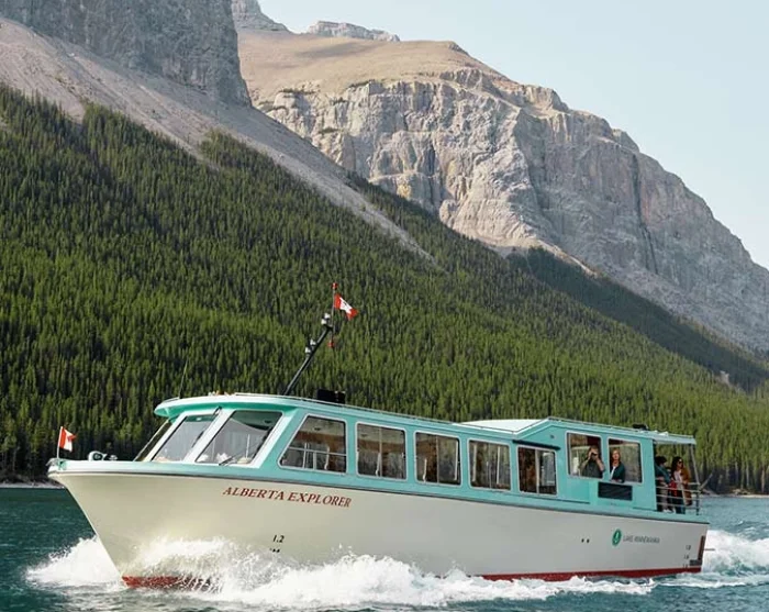 På sejlturen glider du roligt gennem det imponerende landskab, mens den erfarne besætning fortæller om områdets spændende historie, lokale myter og folketro samt geologi. Du får unikke fotomuligheder undervejs, som ikke findes andre steder eller fra land, og der er rig mulighed for at nyde roen og den friske bjergluft midt i de canadiske Rockies vilde natur. Hvis du er heldig, kan du måske spotte nogle af nationalparkens dyr i vandkanten eller på bjergkanterne.