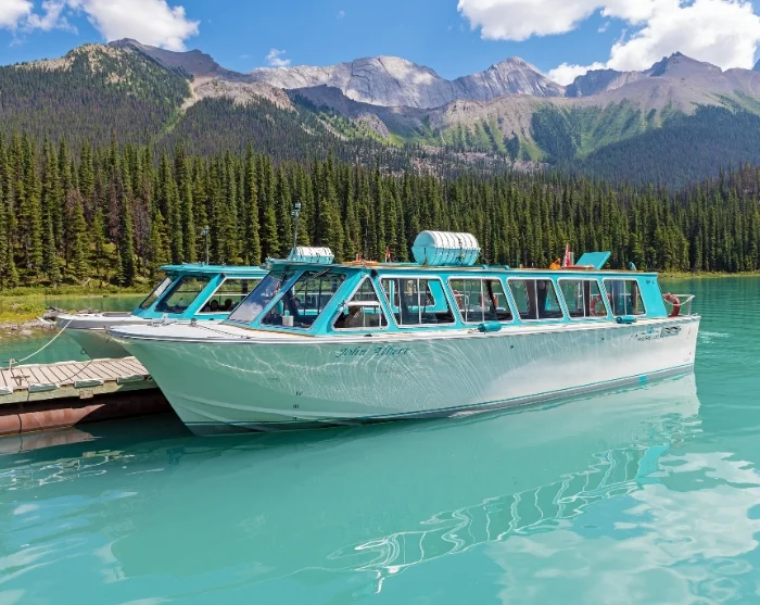Tag med på en naturskøn sejltur på Maligne Lake, som er en af de smukkeste og mest ikoniske søer i de canadiske Rocky Mountains.