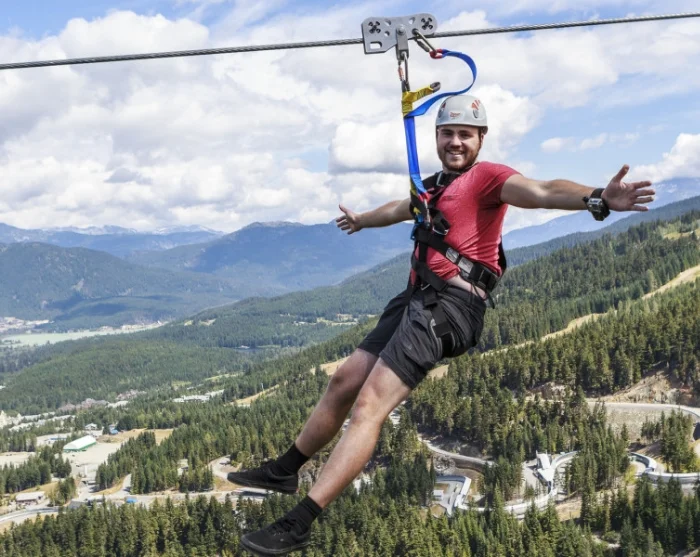 Turen begynder på toppen af Blackcomb Mountain, hvor du bliver spændt sikkert fast og sendt af sted på den over 2 kilometer lange svævetur, hele 180 meter oppe i luften. Her oplever du ikke kun fart og spænding, men også en fantastisk udsigt over Whistlers vilde bjerglandskaber.