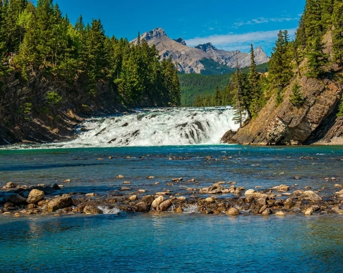 Efter et par timer, ankommer du til den charmerende bjergby Banff, der ligger i selve Banff Nationalpark. Brusende Bow River løber gennem byen, og vi anbefaler en tur til de berømte vandfald Bow Falls, som du nemt kommer til på en gåtur via anlagte stier eller på cykel.