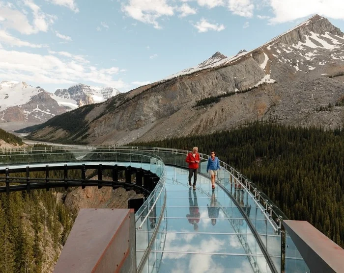 På ruten hertil gøres stop ved foden af Athabasca gletsjeren, hvorfra du med en terrængående bus tages et stykke op på gletsjeren og får mulighed for at mærke isen. Herefter venter dig en tur på områdets glasbro, der tager dig 280 meter over Sunwapta Valley.