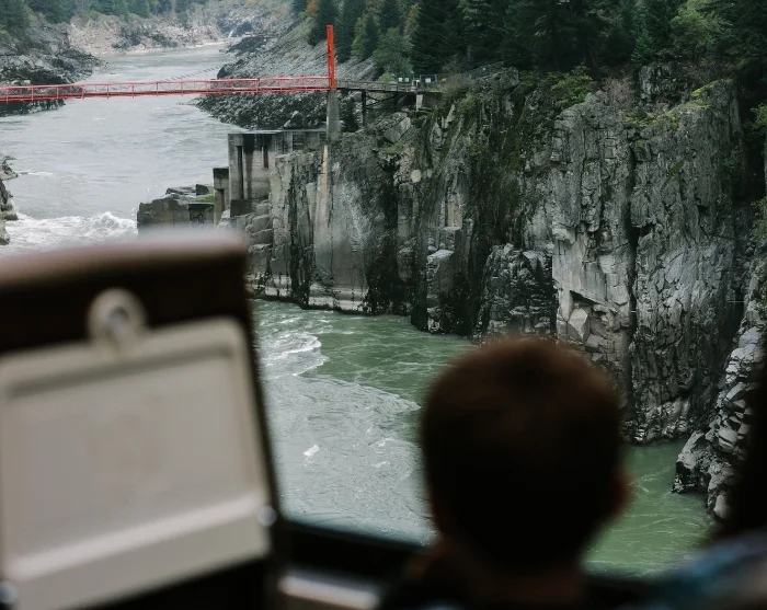 Undervejs passerer du Hell’s Gate – en 35 meter bred kløft, hvor Fraser River brager igennem med hele 757 millioner liter vand hvert minut. Et dramatisk syn af naturens enorme kræfter.