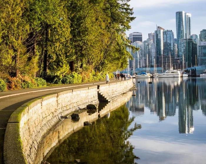Vi kan varmt anbefale et besøg i den urbane oase Stanley Park. Langs parken er der anlagt sti til både gående og cyklister, den såkaldte Vancouver Seawall, og herfra kan du fornemme by og natur gå hånd i hånd med udsigten til majestætiske træer, hav og Vancouvers skyline. I Stanley Park kan du også glæde dig til at opleve de berømte totempæle, der kan dateres tilbage til 1880’erne, og som med deres smukke udskæringer og farver beretter om First Nations-folkenes bedrifter.