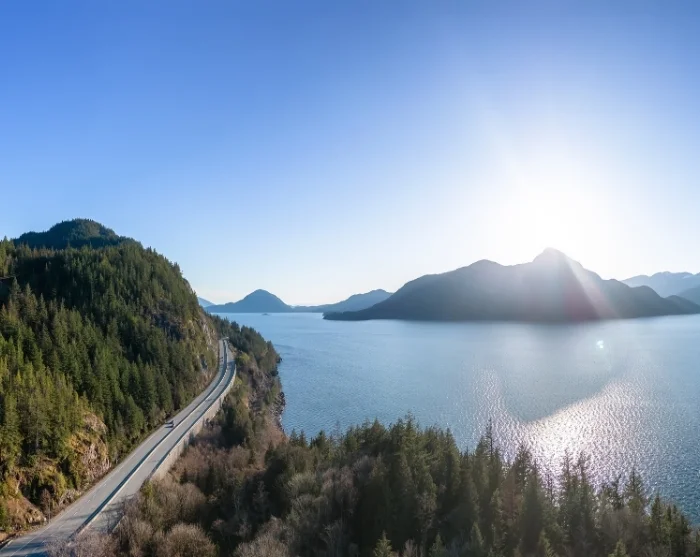 På det første stræk fra Whistler kan du glæde dig til at køre på endnu en scenisk del af Highway 99 – også kaldet ”Sea to Sky Highway”. I dag kommer du fra ”Sky” – altså himmelhøjderne – og kører mod havet ”Sea”, og udsigterne på ruten er en ren fryd for øjet.