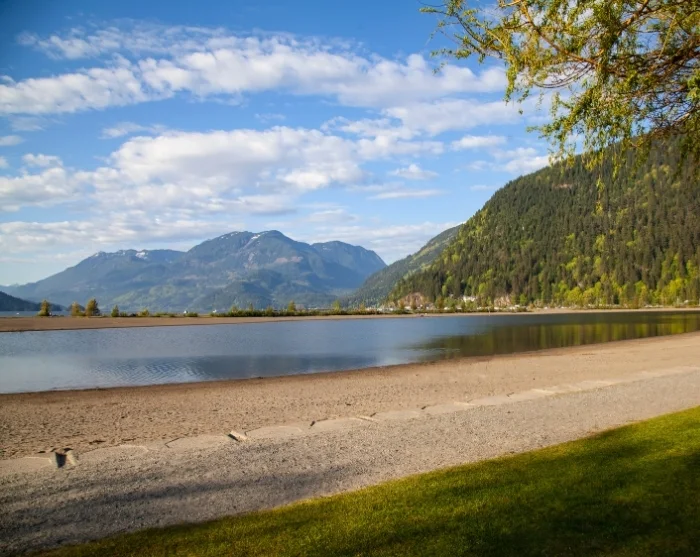 Vi kan varmt anbefale at gøre stop efter cirka 1,5 times kørsel ved den lille strand i Harrison Hot Springs. Det er et oplagt kaffestop og med mulighed for et forfriskende dyp i Harrison Lake i de lune sommermåneder.