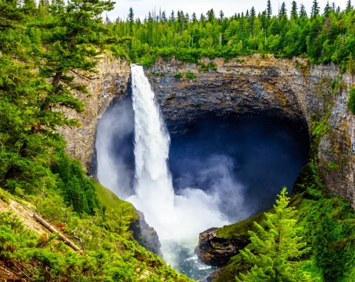 Wells Gray Provincial Park er særligt kendt for sine kraftfulde vandfald. Her venter dig et hårrejsende øjeblik, når du står foran Canadas fjerde højeste vandfald, Helmcken Falls, der falder 141 meter ned i en kløft og efterlader et slør af vanddråber i luften (ca. 45 min fra Clearwater).