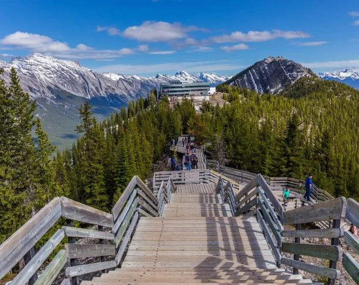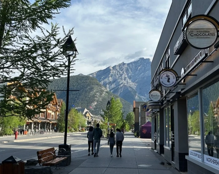 Banff er en charmerende by beliggende i Bow Valley i selve Banff Nationalpark. Også her skærer en del af den kraftfulde flod Bow River sig igennem byen, og vi kan varmt anbefale en gåtur via det velanlagte stisystem hen til byens berømte vandfald, Bow Falls. Du kan også tage en tur i højderne i gondolliften, Banff Gondola, der på knap 8 minutter tager dig 700 højdemeter op til toppen af Sulphur Mountain, hvor du får panoramisk udsigt til intet mindre end 6 bjergkæder. På toppen har du mulighed for at nyde en forfriskning på Sky Bistro, hvor menuen er lige dele god mad og udsigt.